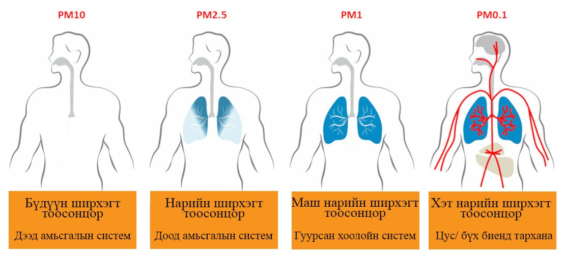 Эх сурвалж: https://www.encyclopedie-environnement.org/en/health/airborne-particulate-health-effects/