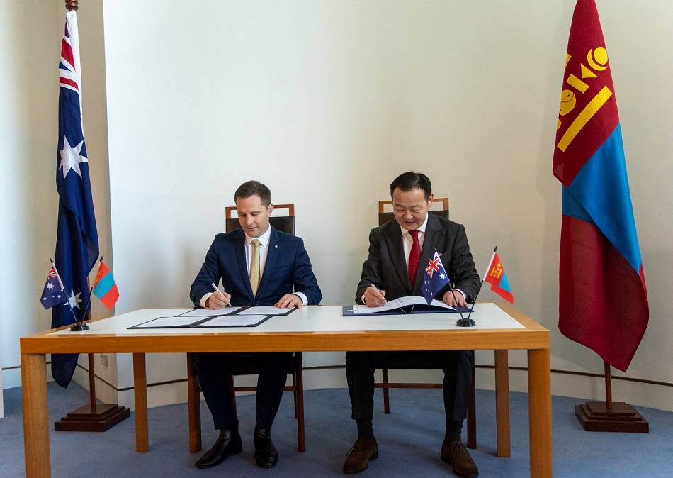 Монгол Улсын Засгийн газар, Австрали Улсын Засгийн газар хооронд “Ажиллах болон амрах” визийн зохицуулалтыг хэрэгжүүлэх тухай Засгийн газар хоорондын харилцан ойлголцлын Санамж бичигт гарын үсэг зурах ёслолын ажиллагаа 2022 оны гуралдугаар сарын 31-нд Австралийн Парламентын ордонд боллоо.