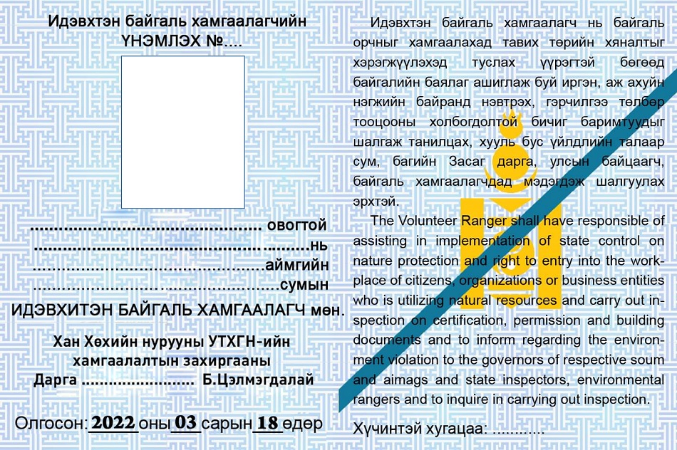 Аялал жуулчлалын бааз, амралтын газрын идэвхтэн байгаль хамгаалагчийн шаардлага хангасан ажилтантай гэрээ байгуулж, идэвхтэн байгаль хамгаалагчийн үнэмлэх олгох ажлыг эхлүүллээ.