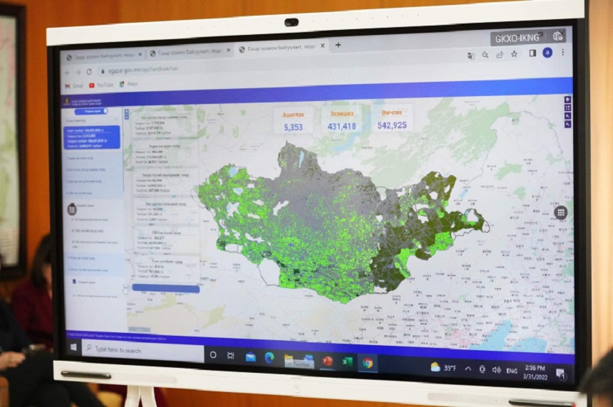 Одоогоор ойн болон усны сан бүхий газар, улсын тусгай хэрэгцээний газрууд, хөдөө аж ахуйн зориулалттай, хот тосгоны болон зам дэд бүтцийн газруудыг нэгдсэн цахим системд холбоод байгаа аж.