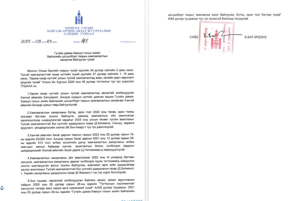 УЛСЫН ТУСГАЙ ХАМГААЛАЛТАД АВСАН ҮНДЭСЛЭЛ