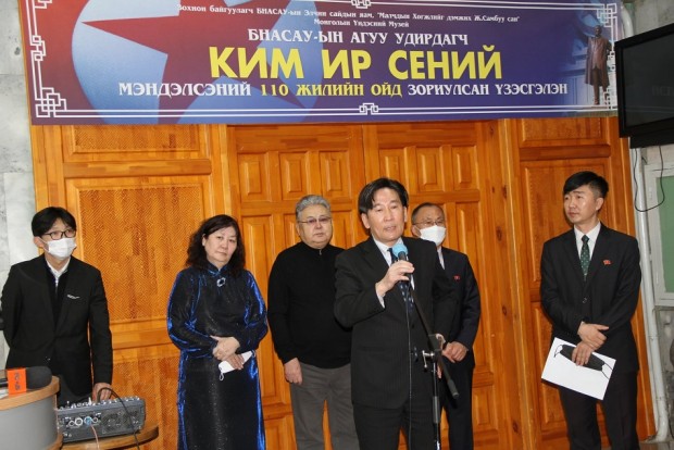 Уг үзэсгэлэнг Монголын Үндэсний музей, Монголын малчдын хөгжлийг дэмжих Ж.Самбуугийн Сан, БНАСАУ-аас МУ-д суугаа Элчин сайдын яам, Монголын Жүче судлалын төв хамтран зохион байгуулж байна. Зураг дээр БНАСАУ-д суугаа Монгол Улсын Элчин Сайд н.Эрдэнэдаваа баяр хүргэж үг хэлж байна.