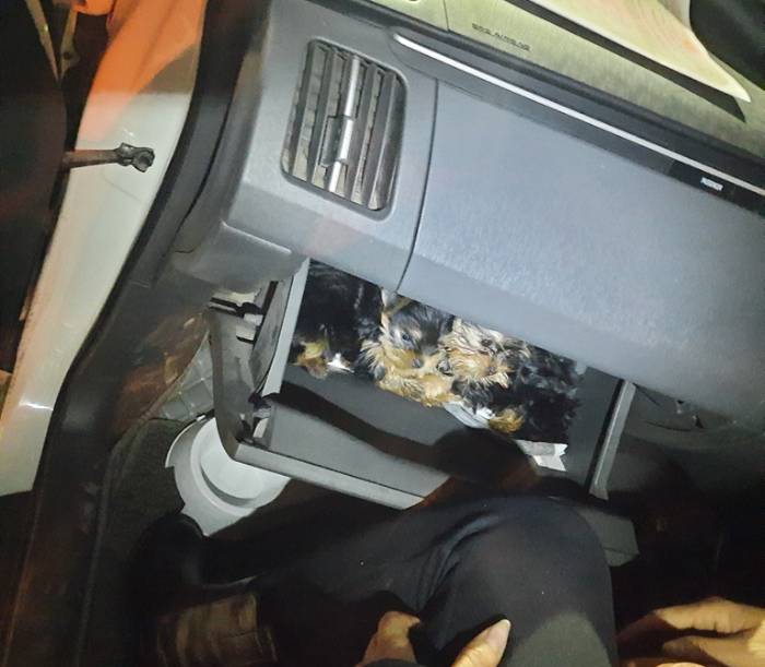Зургаан шууданч тагтааг хайрцганд, хоёр терьер нохойг машинд нуусан байжээ.