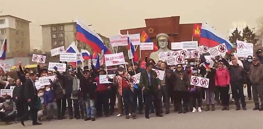 Зарим талаараа ОХУ-ыг дэмжиж, Украины неонацизмыг эсэргүүцэн, хэвлэл мэдээллийн байгууллагууд үнэн бодит мэдээллийг ард түмэнд өгөхгүй байгааг шүүмжлэх болсон. Тиймээс өнгөрөгч амралтын өдөр Г.К.Жуковын талбайд “Даян дэлхийд фашизм хэрэггүй, бид эхнийг хүснэ” уриан дор “Новороссия андууд” нийгэмлэг, “Хөрш ОХУ-ыг дэмжигч монголчуудын цахим нэгдэл” ТББ болон “Даян дэлхийн энхтайван, тэгш эрхт байдлын төлөө” цахим орчинд нэгдсэн иргэд зохион байгуулав. Тэд энэ үеэрээ адил тэгш, үнэн бодит мэдээлэл түгээхийг хүссэн юм.