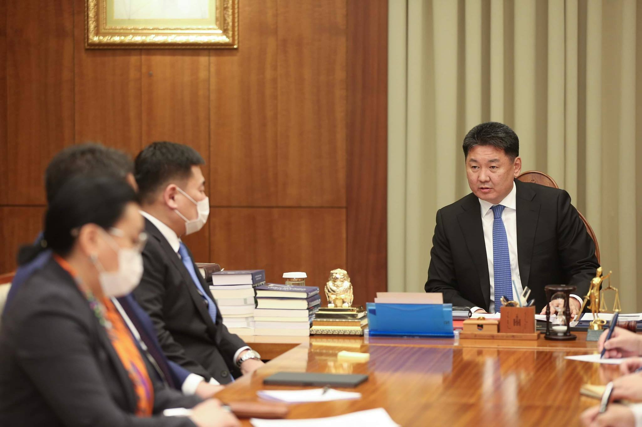 Ерөнхийлөгч У.Хүрэлсүх өнөөдөр (2022.04.11) УИХ-ын дарга, Ерөнхий сайд, УИХ-ын байнгын хороодын дарга нар, Засгийн газрын гишүүд, УИХ дахь МАН-ын бүлгийн дарга, гишүүдэд үүрэг, чиглэл өглөө.