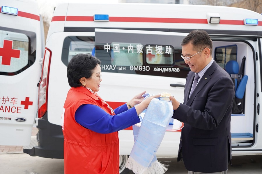 “Ковид-19” халдварын үед өвчтөн тээвэрлэх зориулалттай иж бүрэн тоноглогдсон автомашиныг БНХАУ-ын Өвөр Монголын Өөртөө Засах Орны Улаан загалмайн байгууллагаас хандивлаж, Монголын улаан загалмай нийгэмлэгээр дамжуулан гардуулж өгч байгаа юм.