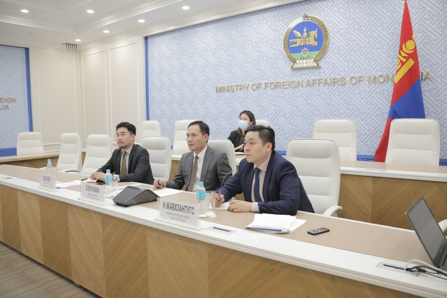 Энэ оны гуравдугаар сарын 15-ны өдөр болсон Монгол, Узбекистаны Гадаад харилцааны яамд хоорондын зөвлөлдөх уулзалтын мөрөөр хэрэгжүүлэх ажлын төлөвлөгөөнд тусгагдсан асуудлуудын явц, хэрэгжилтийг ярилцах зорилгоор Гадаад харилцааны дэд сайд Б.Мөнхжин Бүгд Найрамдах Узбекистан Улсын Гадаад хэргийн орлогч сайд Ф.А.Сидиков нар өчигдөр /2022.04.12/ цахим уулзалт хийв.