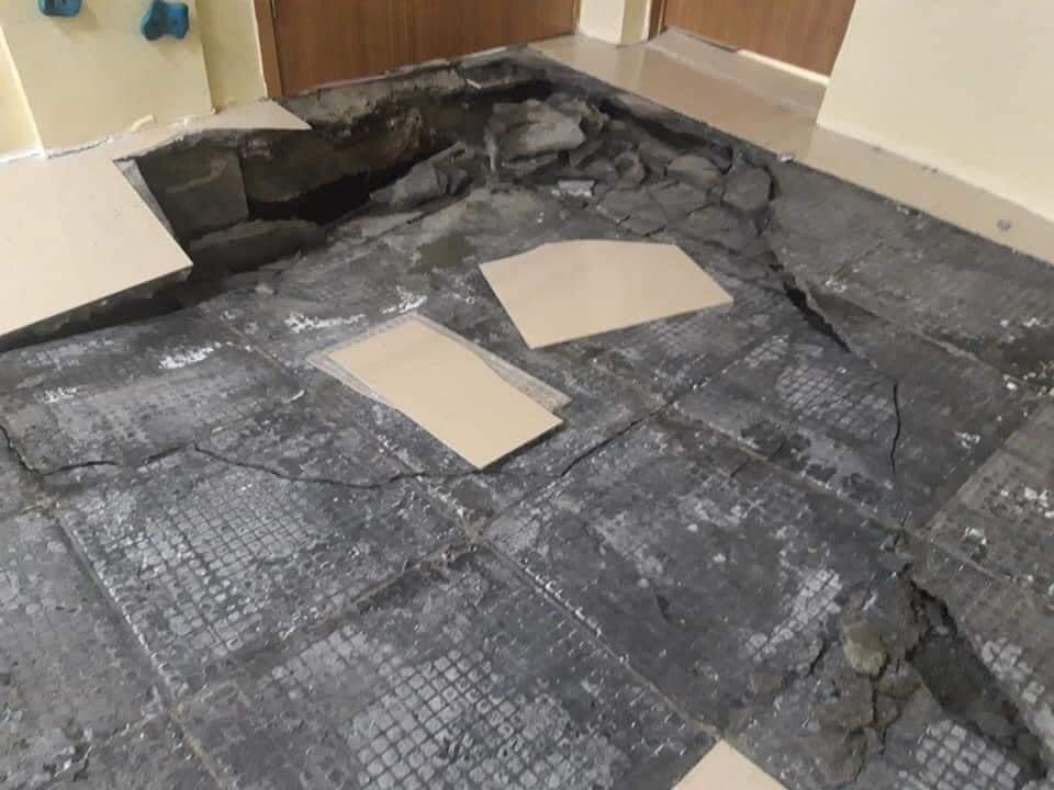 Барилгын нэг давхрын баруун хэсгийн хана цуурч, их хэмжээний нуралт үүссэн байв. Мөн шал нь доош сууж, өнөө маргаашгүй нурах гэж байгаа мэт харагдаж байлаа. Энэ барилгад хэдий сурагчид хичээллэхгүй байгаа ч удирдах ажилтнууд нь хоёр давхрын өрөөндөө суусан хэвээр байна.