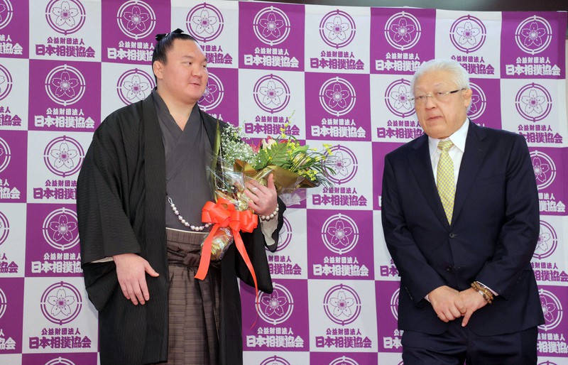 Шинэ ёкозүна Тэрүнофүжигийн ёкозүна цолтой анхны түрүүгээ авсан мэдээг их аварга Хакүхогийн гэнэт зодог тайлсан мэдээ дарсан нь Намрын тэмцээн өндөрлөсний дараахь өдөр байлаа. 45 түрүүлсэн их аварга ч түүнийг зодог тайлсны дараах амьдралын талаар Сүмо бөхийн холбоо тун таагүй шийдвэр гаргасан юм.