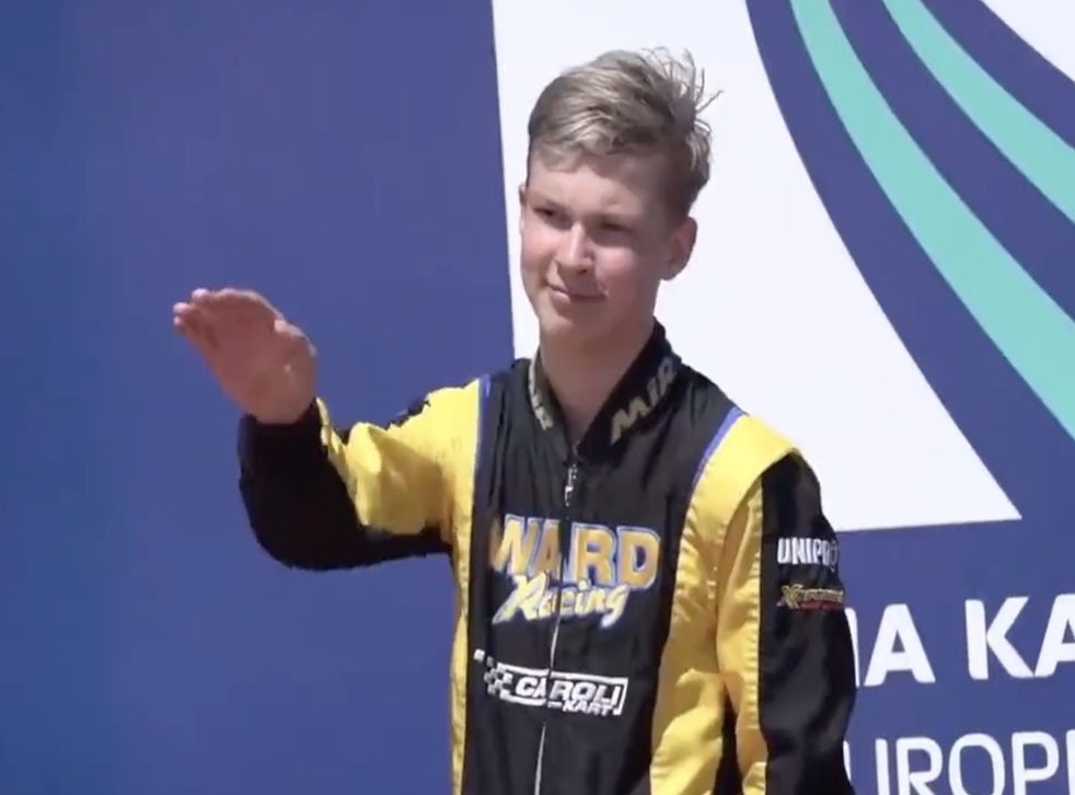 Саяхан Португалд болсон картингийн Европын аваргын тэмцээнд түрүүлсэн ОХУ-ын 15 настай тамирчин Артем Северюхин шагнал гардуулах ёслол дээр Италийн Төрийн дууллын үеэр зүрхэндээ цохин, гараа өргөж, нацист мэндчилгээ дэвшүүлсэн нь том шуугиан тарьлаа.