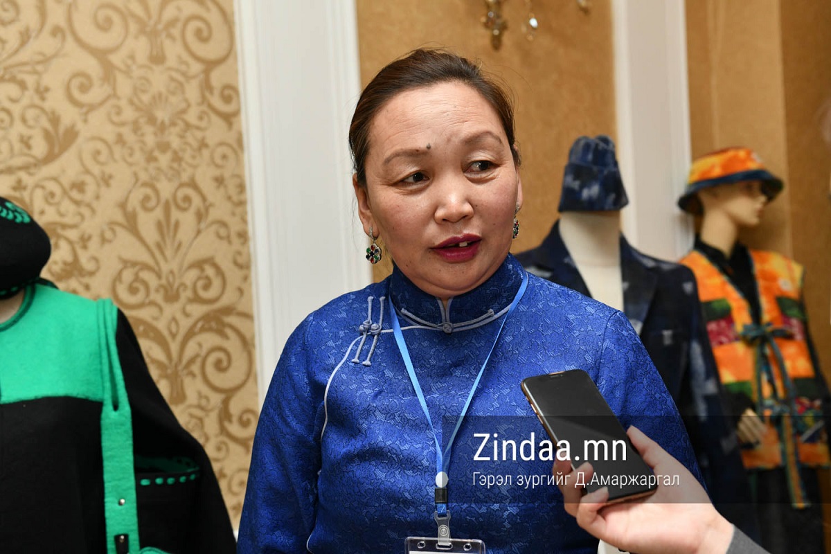 Өрхийн үйлдвэрлэл эрхлэгч Д.Оюун-Эрдэнэ: Дүүргийнхээ оёдолчдын чуулганд хоёр дахь удаагаа оролцож байна. Би эсгийгээр бүтээгдэхүүнээ хийдэг. Одоо оффис гутал түлхүү хийж байна. Өнөөдрийн үзэсгэлэнд пальто, оффис болон гадуур өмсөх, бэлэн улан дээр хийсэн пүүзэн загварын гутлууд авчирлаа. Ер нь бүтээгдэхүүнээ фэйсбүүкээр борлуулж байна.