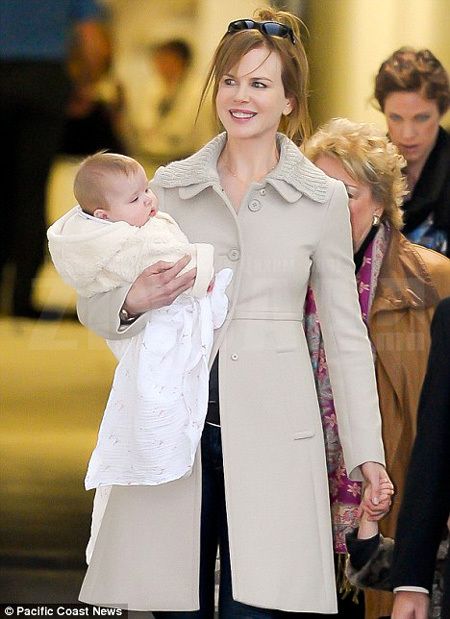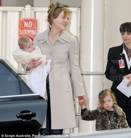 Тэр анх удаа охин Фейтээ төрөлх Австралидаа авчиржээ. Түүнийг хүүхдүүийнх нь хамт нисэх буудал дээр олон паппарациуд угтан авчээ. Охин нь одоо таван сартай аж. Харин том охин Санди Роуз нь дөрөвтэй. Бага охиныг нь харсан хэн чяг ээжийгээ дуурайсан байна хэмээн дуу алдмаар гэнэ. Нисэх буудал дээр Николийн эгч Антония хүү Николасын хамт тэднийг угтжээ.