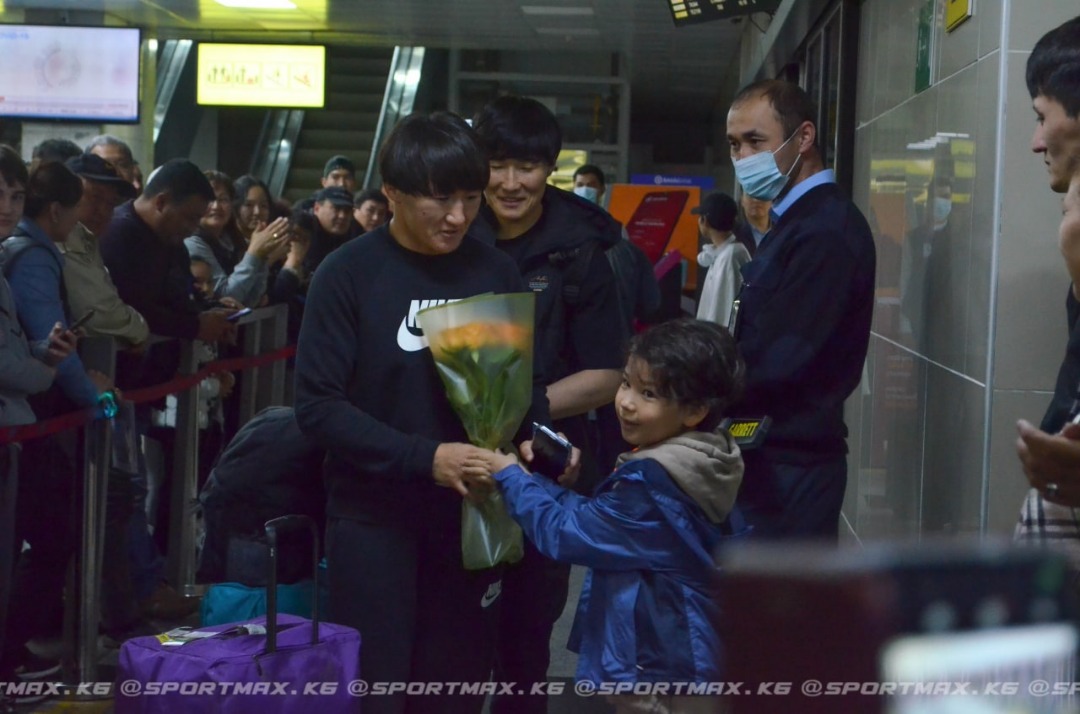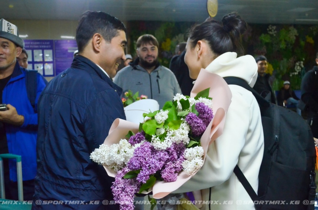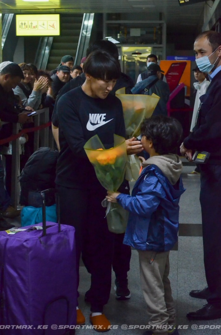 Бишкек хотын олон улсын Манас нисэх буудалд Спортын сайд , Бөхийн холбооны тэргүүд, ах дүү хамаатан садан, анд нөхөд нь угтан авлаа.