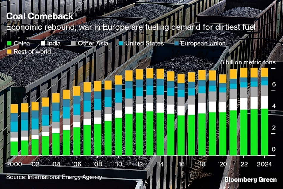 Уур амьсгалын өөрчлөлтийн эсрэг амбийцтай зорилт дэвшүүлж буй Европын холбоо өнгөрсөн онд нүүрсний хэрэглээгээ 12 хувиар өсгөсөн нь 2017 оноос хойших анхны томоохон өсөлтөд тооцогдож байна. Нүүрсний хэрэглээ АНУ-д 17 хувиар Ази, Африк, Латин Америкт мөн нэлээд өндөр хувиар өссөн үзүүлэлттэй байна. Орос Украин руу довтолсон нь дэлхийн эрчим хүчний зах зээлд гинжин урвал үүсгэж, нүүрсийг олны анхаарлын төвд ороход голлох нөлөө үзүүлж байгаа аж.