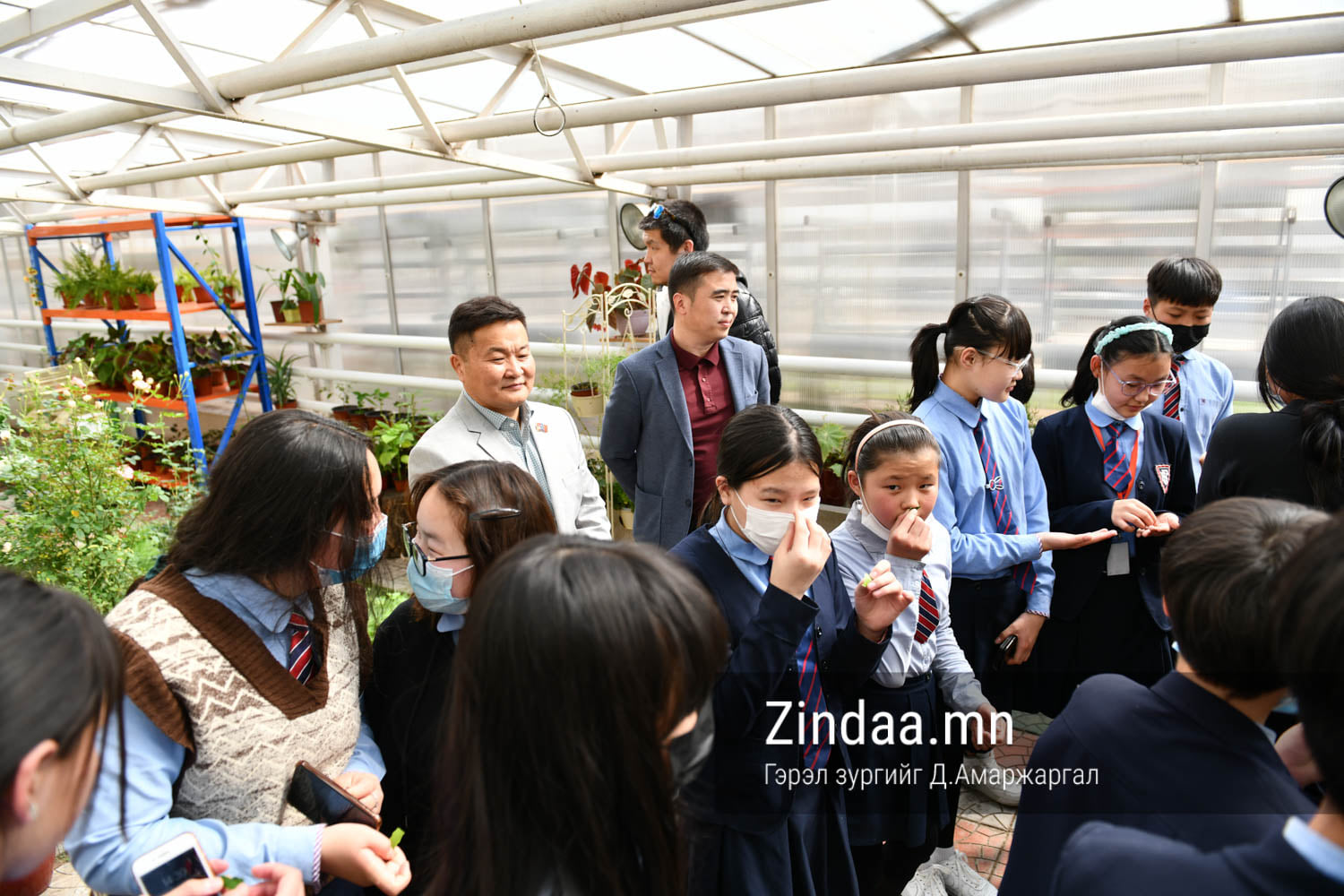 Энд агаар, салхигүй, нарны тусгалыг нэвт оруулсан болохоор бүгчим, халуун байлаа. Гэсэн ч сонирхол татсан олон ургамал байсан учир хүүхдүүд халууныг үл ажирна. Сургагч багшийг тайлбарлахын сөхөөгүй "Багшаа, багшаа" гээд л гараа өргөөд асууж эхэлнэ.