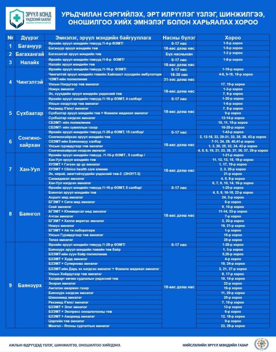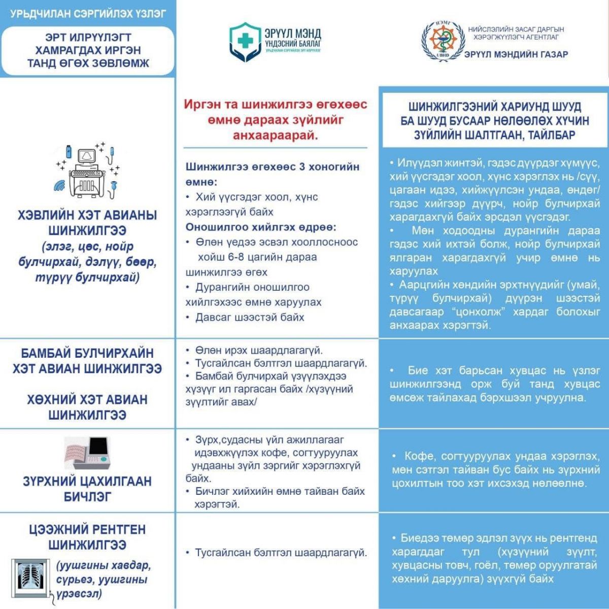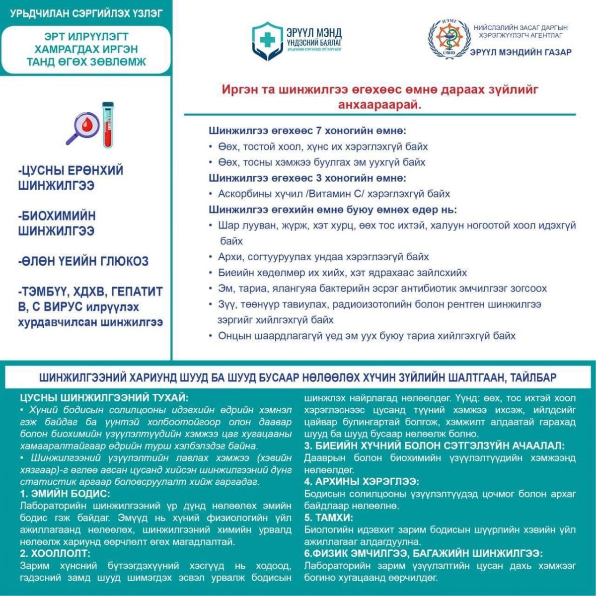 Үзлэг, шинжилгээ зөвхөн өрх, сум, тосгоны эрүүл мэндийн төвд хийгдэнэ.