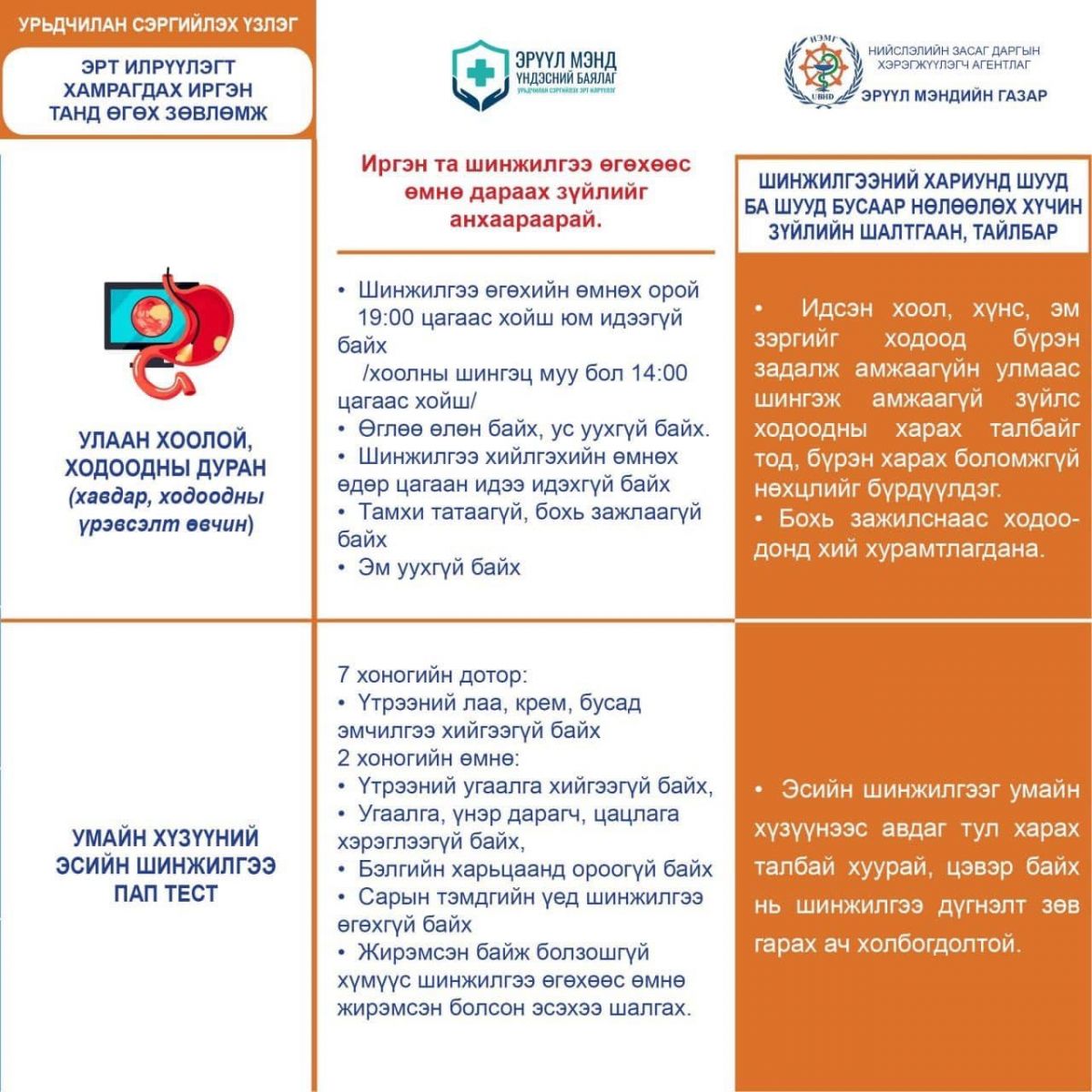 Өнөөдрөөс эхэлж буй эрт илрүүлгийн талаарх БАГЦ МЭДЭЭЛЭЛ