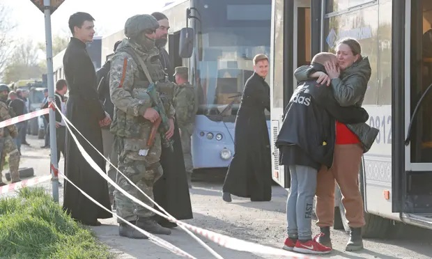 ОХУ-ын Батлан хамгаалах яамны мэдээлснээр, дөрөвдүгээр сарын 30-нд Украины Мариуполь хот дахь “Азовсталь” гангийн үйлдвэр орчмын орон сууцны байруудаас 46 энгийн иргэнийг нүүлгэн шилжүүлжээ. Тус өдөр гал зогсоож, хүмүүнлэгийн коридор нээхэд өдрийн цагаар 25 энгийн иргэн, харанхуй болсон хойно 21 иргэн үйлдвэрийн ойр орчмын орон сууцны барилгаас гарч ирсэн байна.
