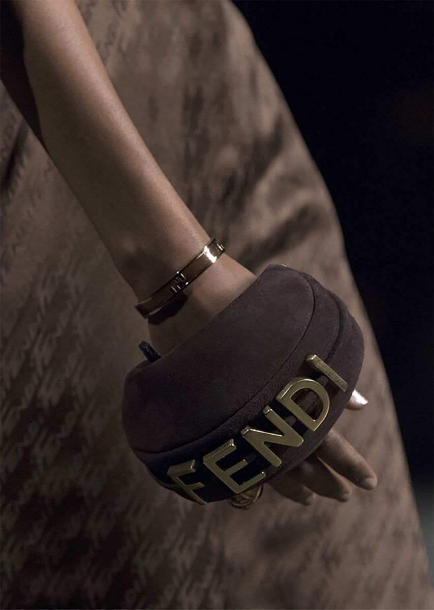 Fendi брэндийн авсаархан цүнх-бугуйвчийг танилцуулж байна. Ямар ч төрхийг илүү сонирхолтой харагдуулах уг цүнхийг том цүнхний хамт барьж ч болно. Бугуйвч мэт цүнхнүүд энэ жил маргаангүй тренд болно гэдгийг санаарай.