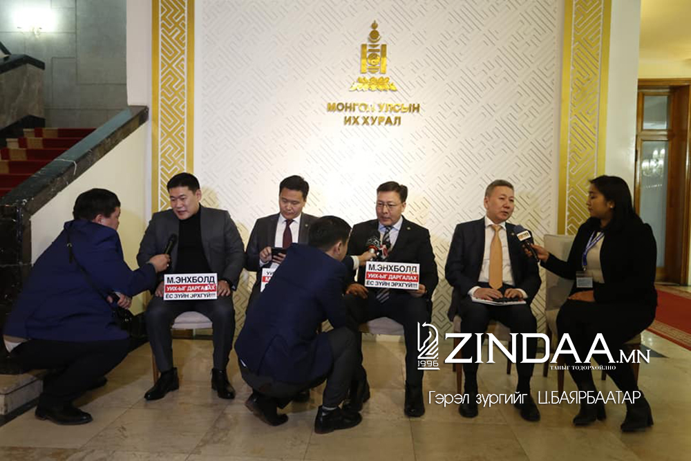 Тэрбээр "Би 50 мянган иргэдийн өмнө ярьсан зүйлээ хэрэгжүүлэх байх гэж итгэн 1.6 жил чимээгүй суулаа. Одоо болно, одоо хоёулаа гараад ард түмнийхээ өмнө мэтгэлцье. Юу хийж чадахгүй байна, яагаад хийж чадахгүй байгагаа ард түмэндээ үнэнээр нь хэл. Хэрэв чи шинэчлэл хийж Монгол Улсыг аврахгүй юм бол танай Засгийн газар огцорно, Л.Оюун-Эрдэнэ ээ" хэмээн ярьж сууна.