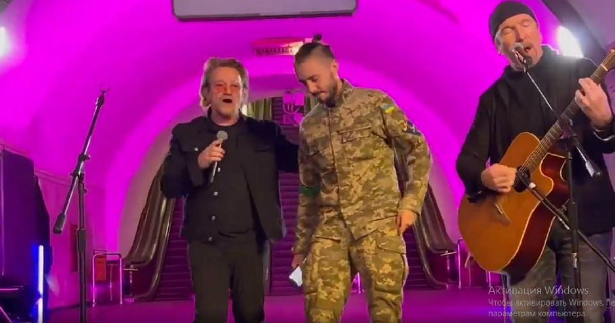 Ирландын алдарт рок хамтлаг U2-ийн гишүүн Боно, Эж хоёр өчигдөр /2022.05.08/ Украины нийслэл Киев хотын метроны "Крещатик" станцад бага хэмжээний концерт тоглолоо.