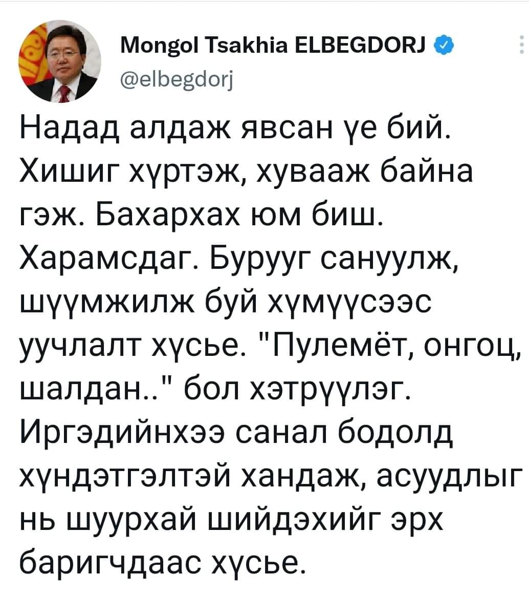 монголд болж буй бүх муу юмны ард 1 хүн байдаг гэсэн, тэр үнэн байх шүү