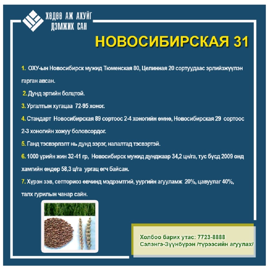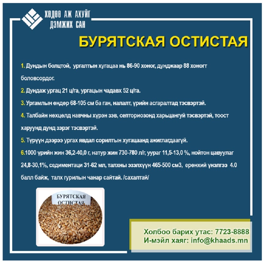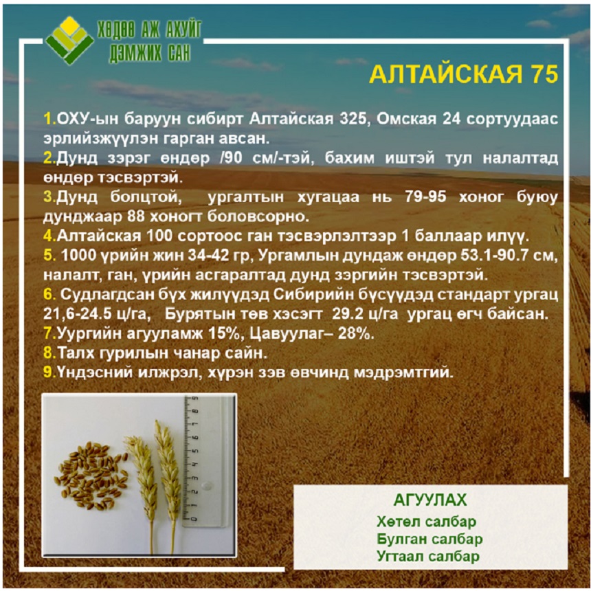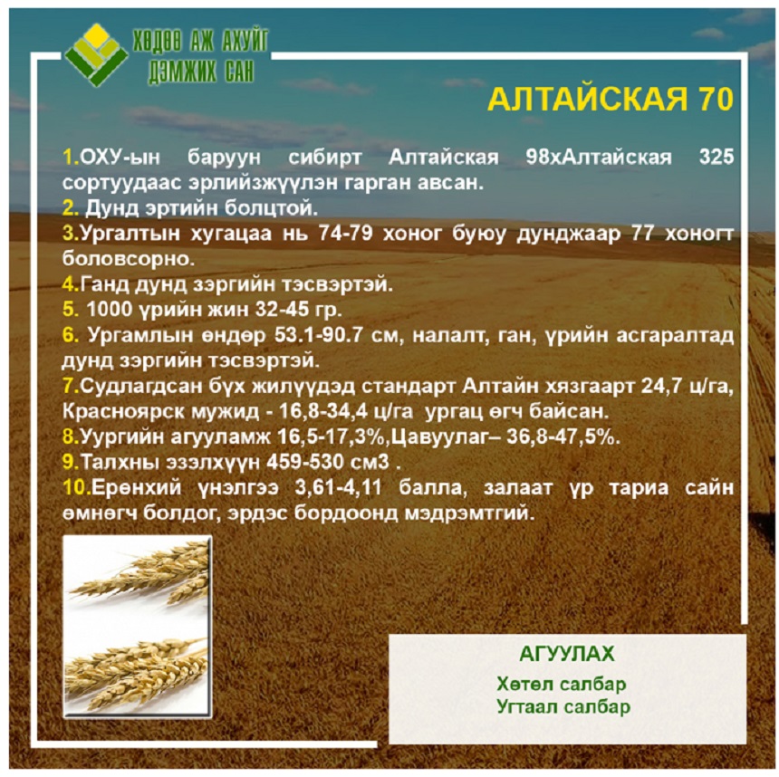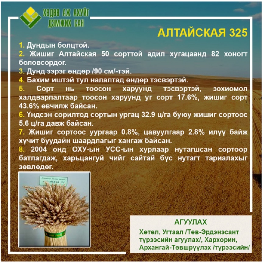 ХХААХҮЯ-ны харьяа Хөдөө аж ахуйг дэмжих сангийн Хөтөл, Хархорин, Угтаал, Булган, Сэлэнгэ салбаруудад улаанбуудайн 10 сортын үрийг хөнгөлөлттэй нөхцөлөөр тариаланчдад нийлүүлж байна. Хаврын тариалалтад зориулан 30 хүртлэх хувийн урьдчилгаатай, намрын ургац хураалтаас үлдэгдэл төлбөрийг төлөх нөхцөлтэйгөөр гэрээ байгуулан дээрх 10 сортын үрийг борлуулж байна.