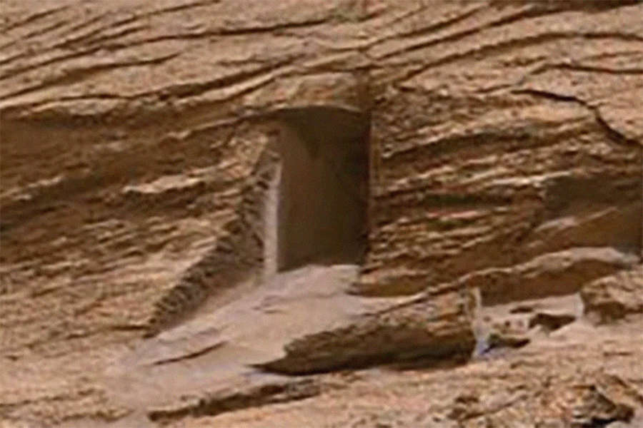 АНУ-ын сансар судлалын НАСА агентлагийн “Curiosity” хөлөг дээр байрлуулсан “Mastcam-Z” камерын энэ сарын 7-нд авсан гэрэл зурган дээр Ангараг гарагийн хадан дунд нэгэн сонирхолтой объект гарчээ. Фронтон Гринхью бэл хэмээдэг газар зүйн тогтоц дээр төгс хэлбэртэй хадан хаалгатай төстэй нэгэн сонирхолтой дүрс гарсан байна.