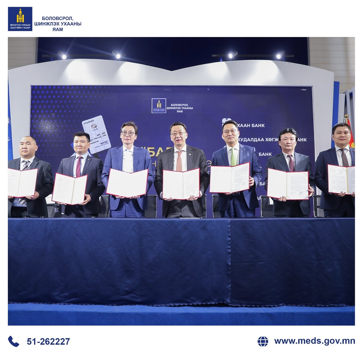 Санамж бичиг байгуулах ёслолд Боловсрол, шинжлэх ухааны сайд Л.Энх-Амгалан, Хаан банкны бизнес хөгжил хариуцсан дэд захирал Б.Баянбат, Төрийн банкны дэд захирал А.Ганбаатар, Худалдаа хөгжлийн банкны гүйцэтгэх захирал О.Орхон Голомт банкны гүйцэтгэх захирлын орлогч Д.Бадрал, Хасбанкны иргэдийн банкны газрын захирал Ц.Ганболд, Богд банкны бизнес банк хариуцсан дэд захирал М.Алтанбагана нар оролцлоо.