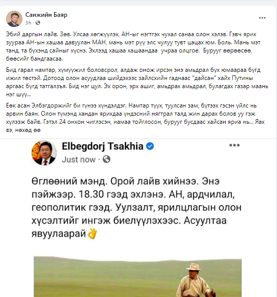 Монгол Улсын Ерөнхийлөгч асан Ц.Элбэгдорж өчигдөр /2022.05.16/ өөрийн цахим хуудсаараа дамжуулан лайв хийж, үзэл бодлоо илэрхийлсэн билээ.