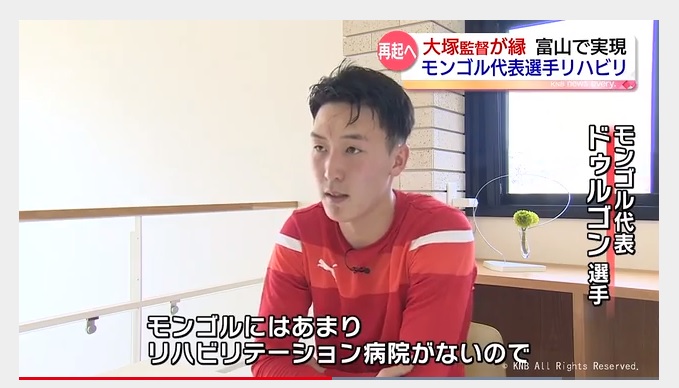 Монголын хөлбөмбөгийн шигшээ багийн тамирчин гэмтлээ эмчлүүлэхээр өнгөрсөн сараас манай Тояама хотод ирээд байна. Тояама хотын нэгдүгээр ахлах сургуулийн дасгалжуулагч байсан Оцүка Ичиро одоо Монголын шигшээ багийн дасгалжуулагчаар ажиллаж байна. Түүний зуучлалаар А.Дөлгөөн энд нэг сарын нөхөн сэргээх эмчилгээ хийлгэж байгаа юм. А.Дөлгөөн 21 настай. 2019 оноос шигшээ багт дуудагдаж, өнгөрсөн оны гуравдугаар сард болсон Япон, Монголын шигшээ багийн тоглолтод оролцсон, Монголын ирээдүйтэй залуу тамирчин.