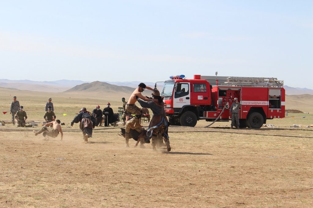 Онцгой байдлын байгууллагын эрэгтэй баг тамирчид Монгол Улсын Ерөнхийлөгч, Зэвсэгт хүчний Ерөнхий командлагчийн нэрэмжит “Марш-тусгай бэлтгэлийн цогцолбор” тэмцээнд 2009 оноос хойш оролцож байна. Энэ жилийн “Байнгын бүрэлдэхүүний салаа”-ны төрөлд Зэвсэгт хүчин, ХХЕГ, ОБЕГ, ТЕГ, ЦЕГ, ТТХГ, Дотоодын цэргийн штаб, ШШГЕГ-ын найман байгууллагын баг тамирчид өрсөлдөж байгаа бөгөөд алба хаагчид жагсаалын болон гардан тулааны үзүүлбэрээ үзүүллээ. 2013 онд Онцгой байдлын албаа төлөөлөн оролцсон баг тамирчид тус тэмцээнээс мөнгөн медалийг хүртэж байсан.