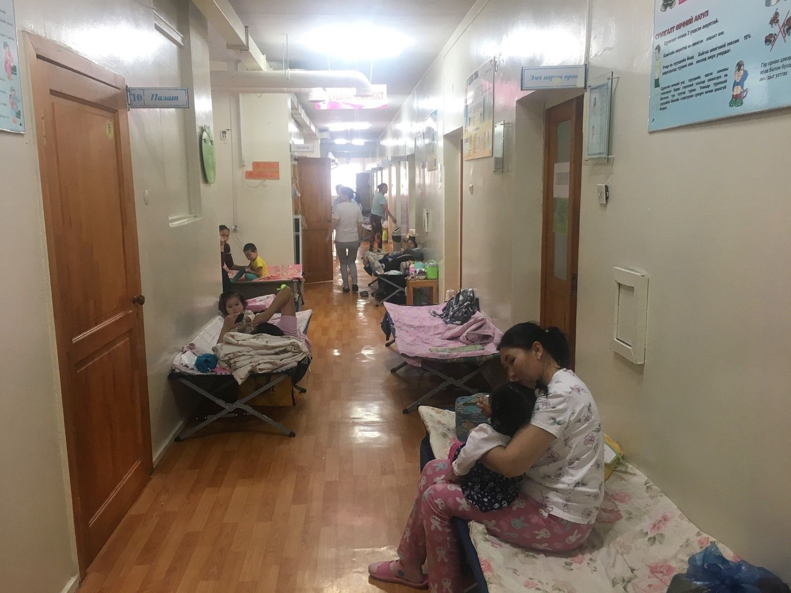 Тус эмнэлгийн хаалгаар гарч орох хүмүүсийг ажиглавал зузаан гудас, бүтээлэг эвхэж хуйлаад барьж яваа харагдана. Ор олдохгүй, газар хэвтэж байгаа гэдгийг эхнэр, хүүхдээ эмнэлгээс аваад гэртээ харих гэж буй аавуудын барьж буй эд зүйлсээс хялбархан харж болох аж. Эмнэлгийн гадаах сандал дээр хүүхдээ хөхүүлэнгээ ар гэрийнхнийгээ хүлээн суух нэгэн ээжтэй уулзах үед нэг ой гарантай охин нь бөх гэгч унтаж байлаа.