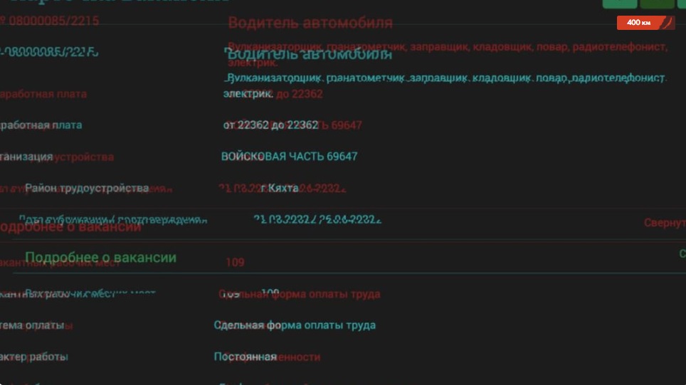 Жишээ нь, Хиагт хотын № 69647 цэргийн ангид 1239 ажилтан яаралтай хайж байгаа зар байна. Үүний 941 нь цэргийн албан хаагч, 298 нь жолооч гэж байгаа. Жолоочоо дөрөв ангилж байгаа гэх бөгөөд сул орон тоог нь судлахад жолооч хайж байгаа хэрэг биш гэдэг нь анзаарагдаж байгаа ажээ. Армиас жолооч нэрээр гранатомётчин, холбоочин, химийн цэрэг, тэр байтугай тагнуулч хайж байгаа гэнэ.