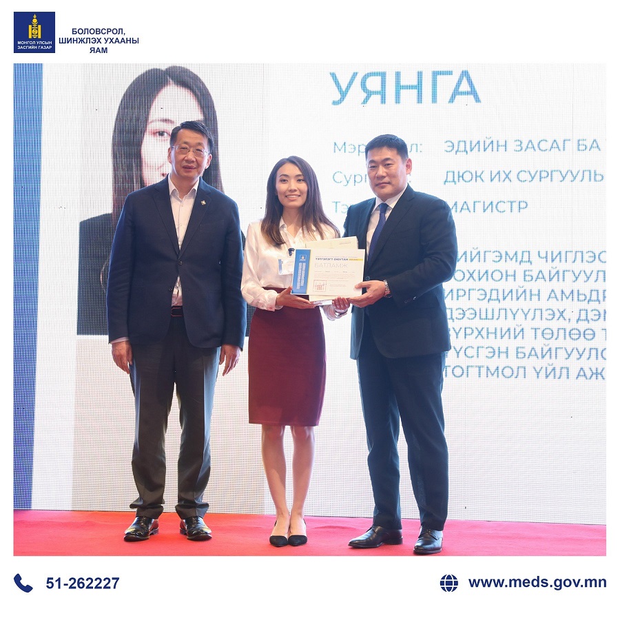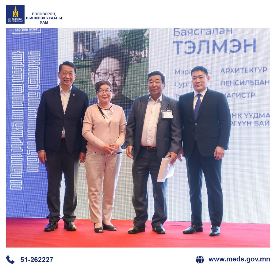 Ерөнхий сайдын нэрэмжит тэтгэлэг гардаж байгаа оюутнуудын 8 нь хилийн чанадад суралцаж байгаа учир ёслолд цахимаар оролцсон. Тэдний батламжийг гэр бүлийн гишүүд нь гардсан юм.