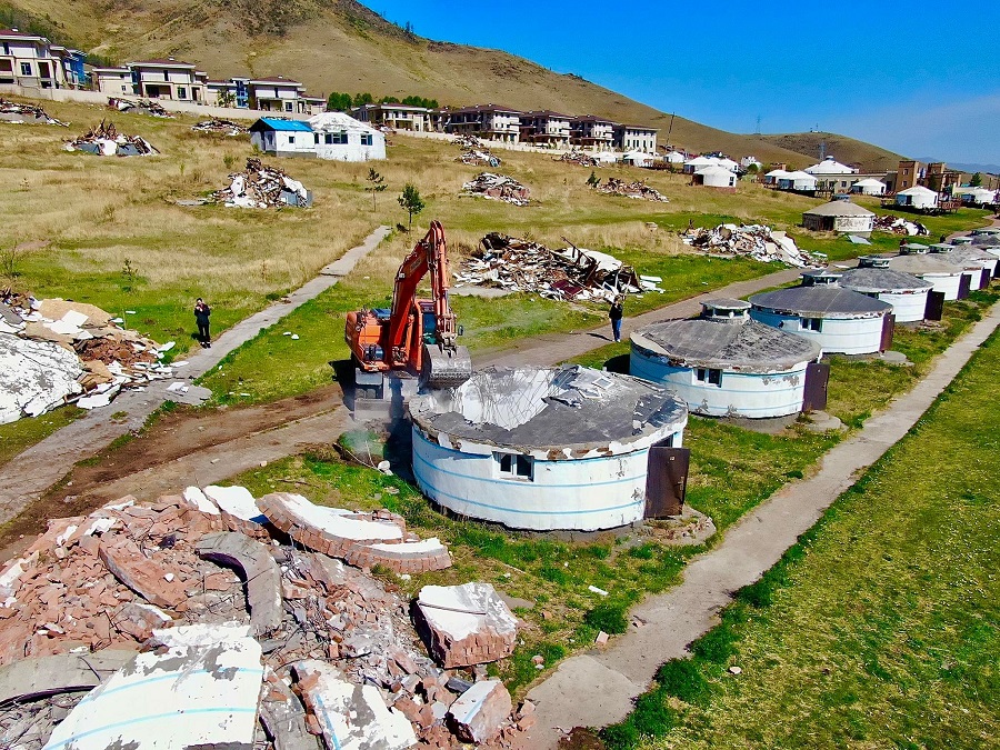 Богдхан уулын Баруун ширээт, Зүүн ширээт рүү гарах замд Дугуй цагаан орчимд байрласан шавар гэрүүд олон жилийн нар салхинд гандаж гундсаны дээр хүмүүс буудаллах нь бүү хэл ойртдог ч үгүй. Өнгө үзэмжгүй болсон тэдгээр гэрийг буулгаж байна.