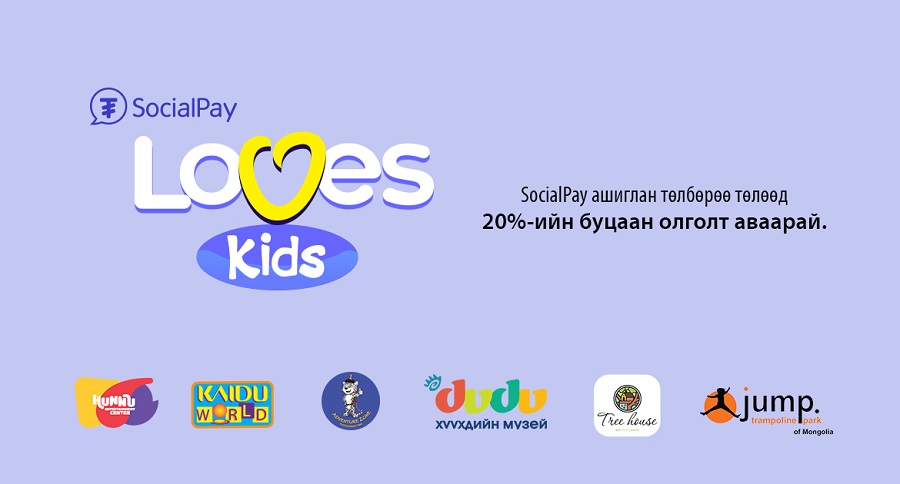 Хэрэглэгчдээ хамгийн ихээр халамжилдаг SocialPay аппликэйшн ч энэ өдөр таныг болон таны гэр бүлийн бяцхан үрсийг хайрлахаа мартсангүй. Бид “Олон Улсын Хүүхдийн Эрхийг Хамгаалах Өдөр”-ийг угтан “SocialPay Loves kids” урамшуулалт аяныг 2022.05.27-06.10-ныг дуустал хэрэгжүүлж байна. Энэхүү урамшуулалт аяны үргэлжлэх хугацаанд та Улаанбаатар хотод байрлах дараах тоглоомын төвүүдээр үйлчлүүлээд 20%-ийн буцаан олголтыг авах боломжтой боллоо.
