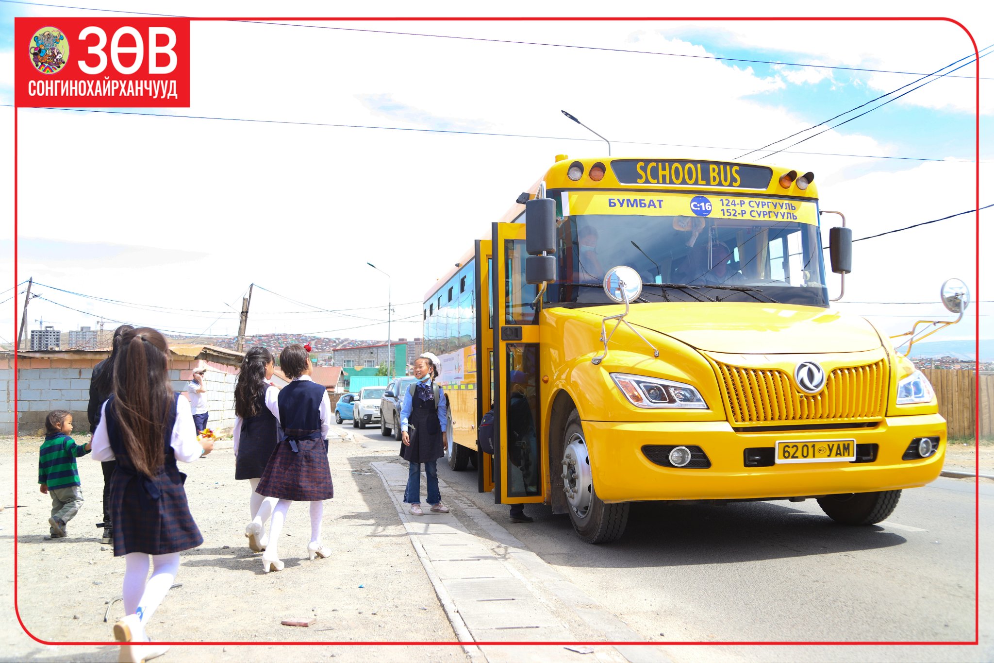 Үүний дагуу Сонгинохайрхан дүүргийн 3, 24, 26, 36, 41 дүгээр хорооны алслагдсан суурьшлын цэгүүдээс сурагчдыг гэр, сургуулийн хооронд аюулгүй зорчих боломжийг бүрдүүлэх, авто замын түгжрэлийг бууруулах, эцэг эхийн цагийг хэмнэх зорилгоор Толгойт бүсэд хоёр автобус явж байна.