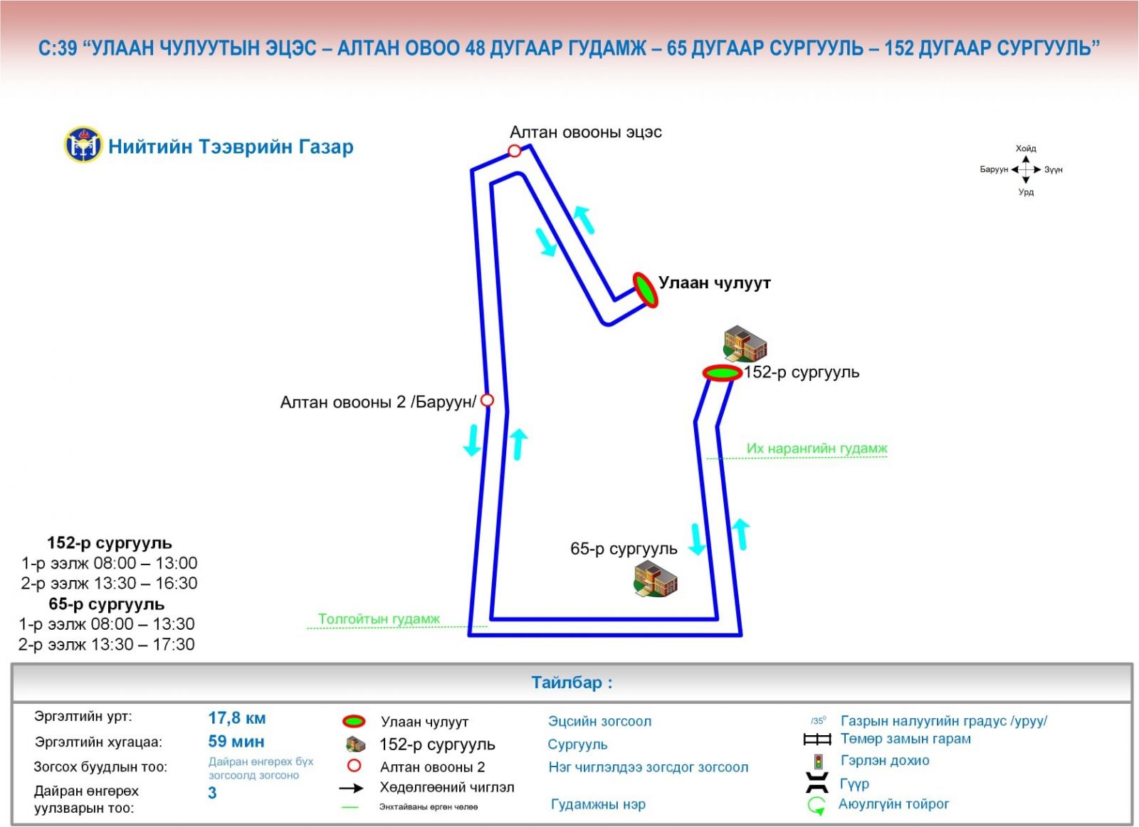 -С:39 “Улаанчулуутын эцэс Алтан Овоо 48 дугаар гудамж 65 дугаар сургууль 152 дугаар сургууль”