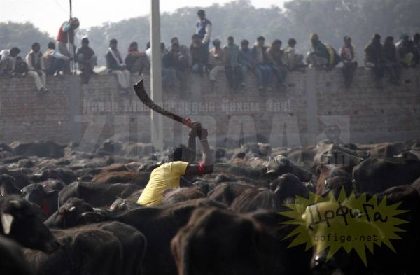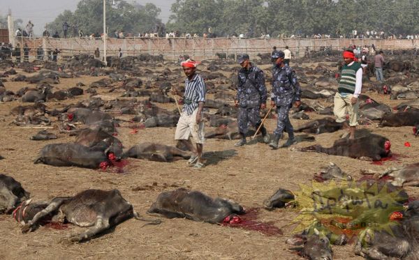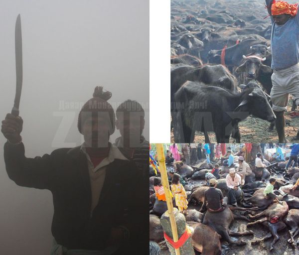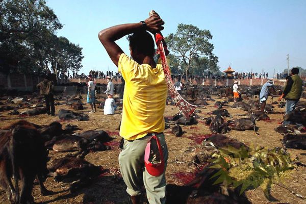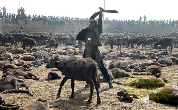 Непалийн өмнөд нутаг. Эндхийн оршин суугчид Гадхимаи (Gadhimai) хэмээх бурхандаа өргөл болгож хэдэн зуун малаар тахилга өргөдөг байна. Энэ цуст баяр нь Непаль, Энэтхэгийн хилийн ойролцоо орших Барияпур (Bariyapur) тосгонд хоёр өдөр болдог. Цусан гол урсана. Ингэснээр бурхан тэднийг зовлонгоос ангижруулна гэж мунхагладаг ажээ. Хөрш Энэтхэгээс ч энэ аллагад оролцохоор сүсэгтэнгүүд ирдэг байна.