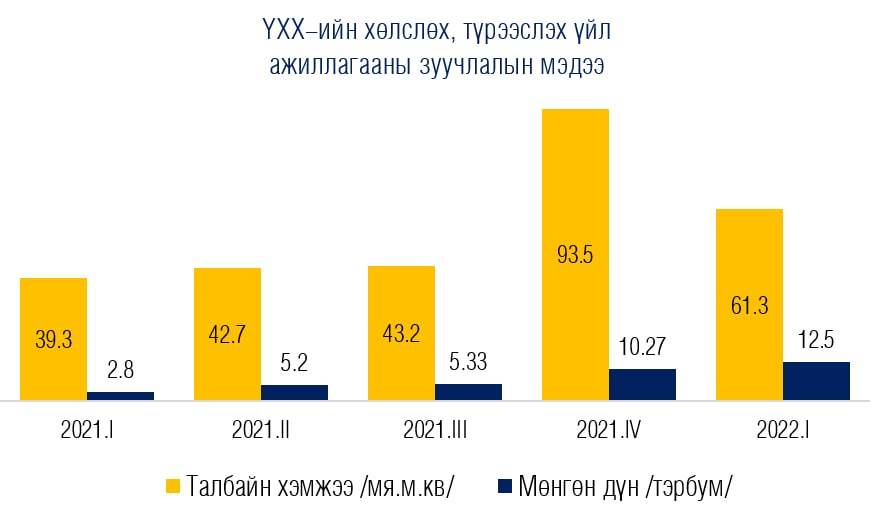 Харин нийт 659 хэлцлээр 61.3 мянган м.кв талбай, 12.5 тэрбум төгрөгийн үнэ бүхий үл хөдлөх хөрөнгийг зуучлан хөлслүүлж, түрээслүүлсэн байна.