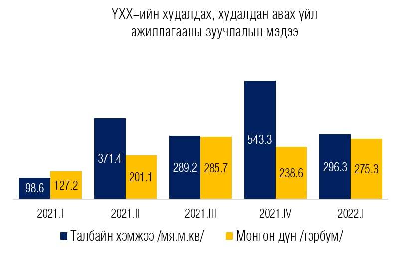 Давхардсан тоогоор эдгээр байгууллага нийт 1,621 хэлцлээр 296.3 мянган м.кв талбай, 275.3 тэрбум төгрөгийн үнэ бүхий үл хөдлөх хөрөнгийг зуучлан худалдаж, шилжүүлжээ.