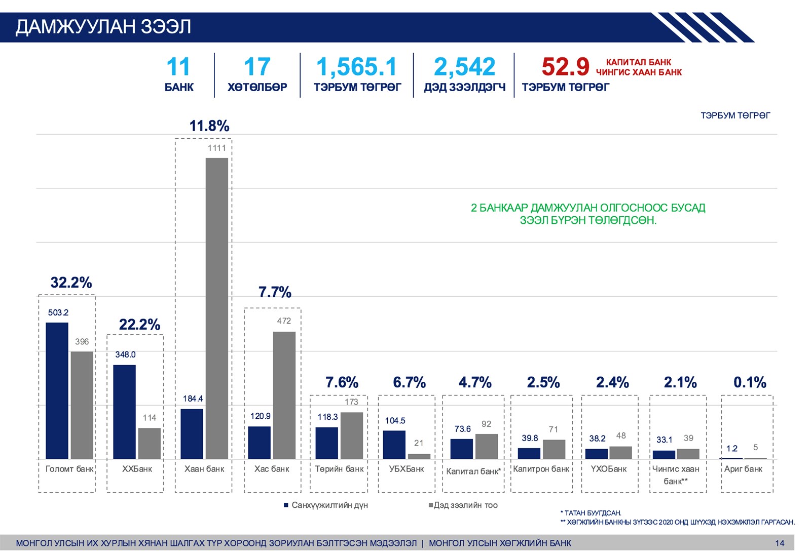 Капитал банк болон Чингис хаан банкныхаас бусад дамжуулан зээл төлөгдөж дууссан аж.