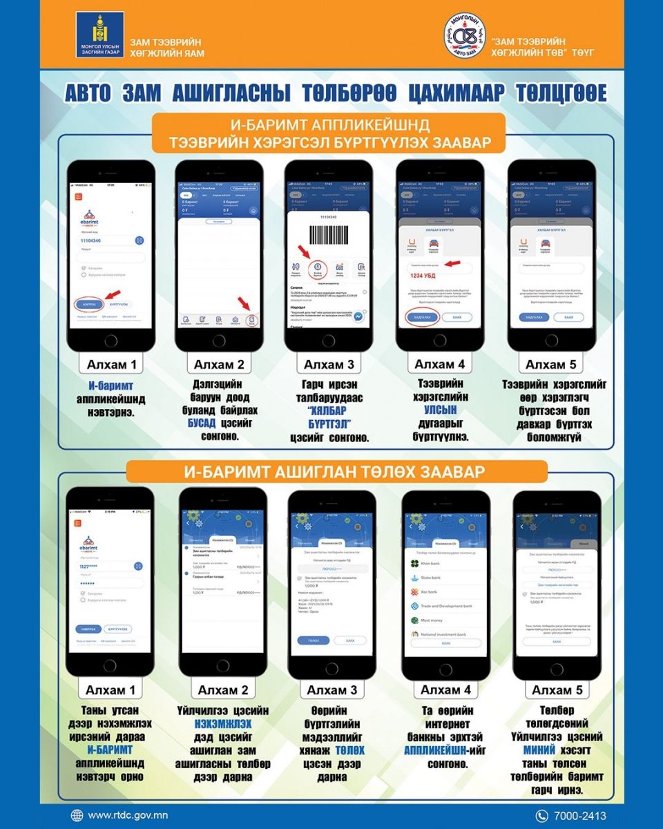 Автозам ашигласны төлбөрийг цахимаар төлөх боломжтой