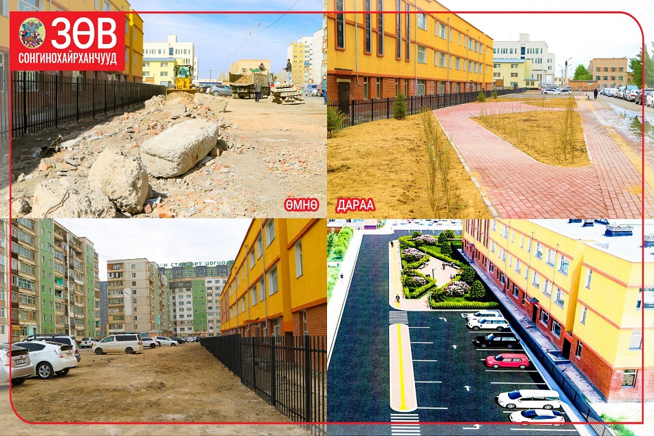Сонгинохайрхан дүүргийн 19-р хорооны 62 дугаар сургуулийн зүүн болон хойд хэсгийн талбайг тохижуулж, ногоон байгууламж, авто зогсоол хосолсон амралтын газар байгуулах санаачилгыг гарган тохижилт, бүтээн байгуулалтыг хэрхэн гүйцэтгэх талаарх төлөвлөгөөт ажлыг 2021 оны тавдугаар сард эхлүүлж байсан. Харин өнөөдөр тус бүтээн байгуулалтын тохижилтын ажил 80 гаруй хувьтай үргэлжилж байна.