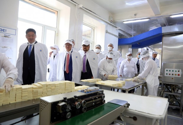 Монгол Улсын Ерөнхийлөгч Ухнаагийн Хүрэлсүх “Хүнсний хангамж, аюулгүй байдал” үндэсний хөдөлгөөний хүрээнд 3 дахь өдрөө дотоодын үйлдвэрүүдтэй танилцаж байна.