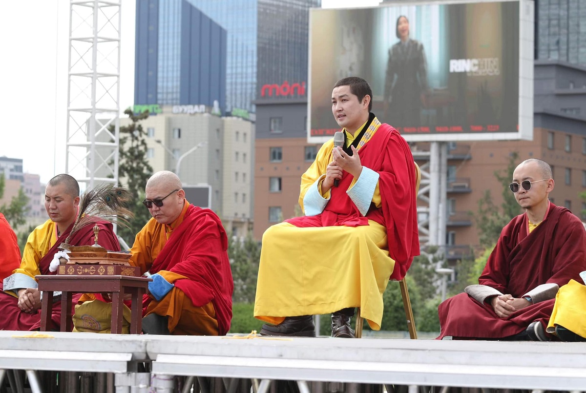 Сүхбаатарын талбайд болсон өнөөдрийн бүх нийтийн бясалгалыг Наро Банчэн Гэгээнтэн удирдаж, ном айлдлаа.