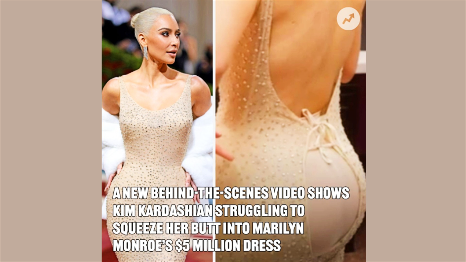 Реалити шоуны од Ким Кардашъяан өнгөрөгч тавдугаар сард болсон "Met Gala" шагнал гардуулах ёслолын улаан хивснээ домогт Мэрлин Монрогийн өмсөж байсан гоёмсог даашинзтай ирж олныг шуугиулсан. Тус даашинзыг өмсөхийн тулд их хэмжээний жин хаясан тэрээр хатуу шүүмжлэлд өртжээ.
