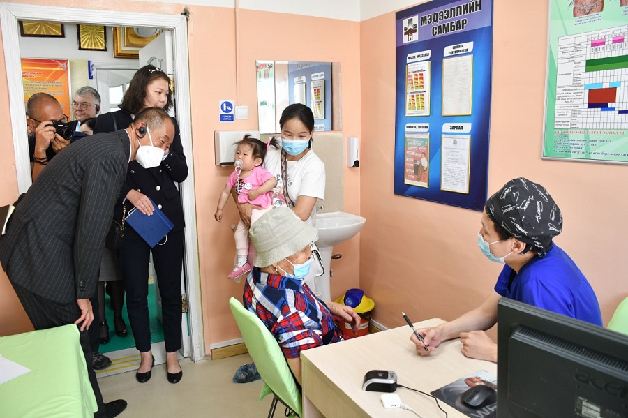 Дэлхийн эрүүл мэндийн байгууллагын Номхон далайн баруун бүсийн захирал Др Такеши Касай болон ажлын хэсгийн бүрэлдэхүүн СХД-ийн “Гурван жаргал хайрхан” өрхийн эрүүл мэндийн төвд /2022.06.17/ өдөр ажиллалаа.