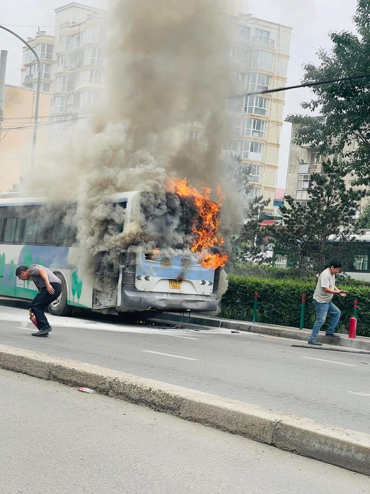 Тодруулбал, БЗД-ийн 3-р хороо Баянцээлийн эсрэг талд зам дагуу нийтийн тээврийн автобус шатаж байна гэх дуудлагыг 12:01 цагт авч Гал түймэр унтраах, аврах 10-р ангийн ээлжийн бүрэлдэхүүнийг очиход "Тэнүүн-Огоо" ХХК-ний Daewoo маркийн “Чиглэл 10” автобусны арын хэсэг шатаж байсныг бүрэн унтраажээ.